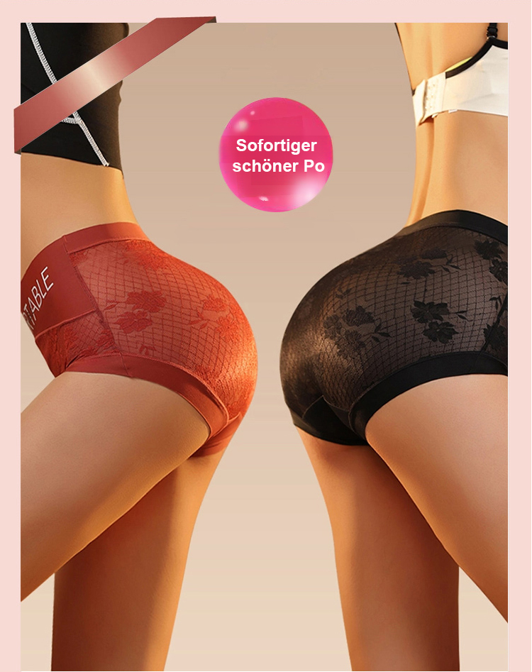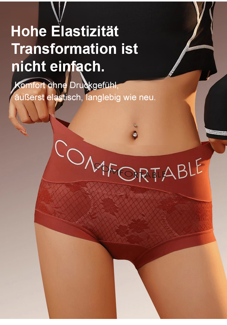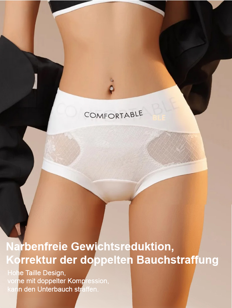 Taillenhohe, bauchformende Spitzenunterhose
