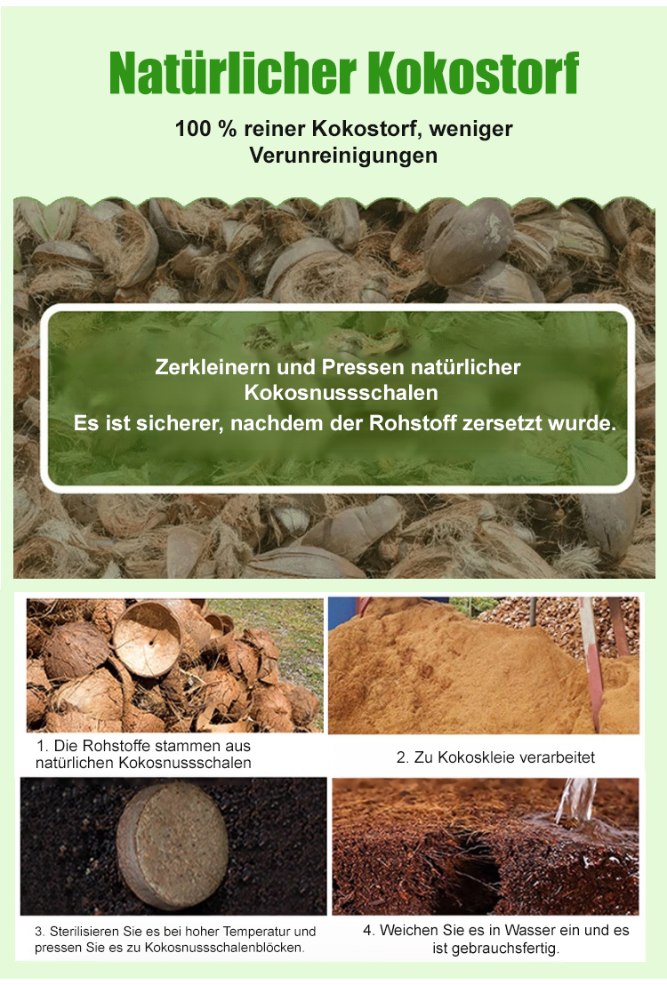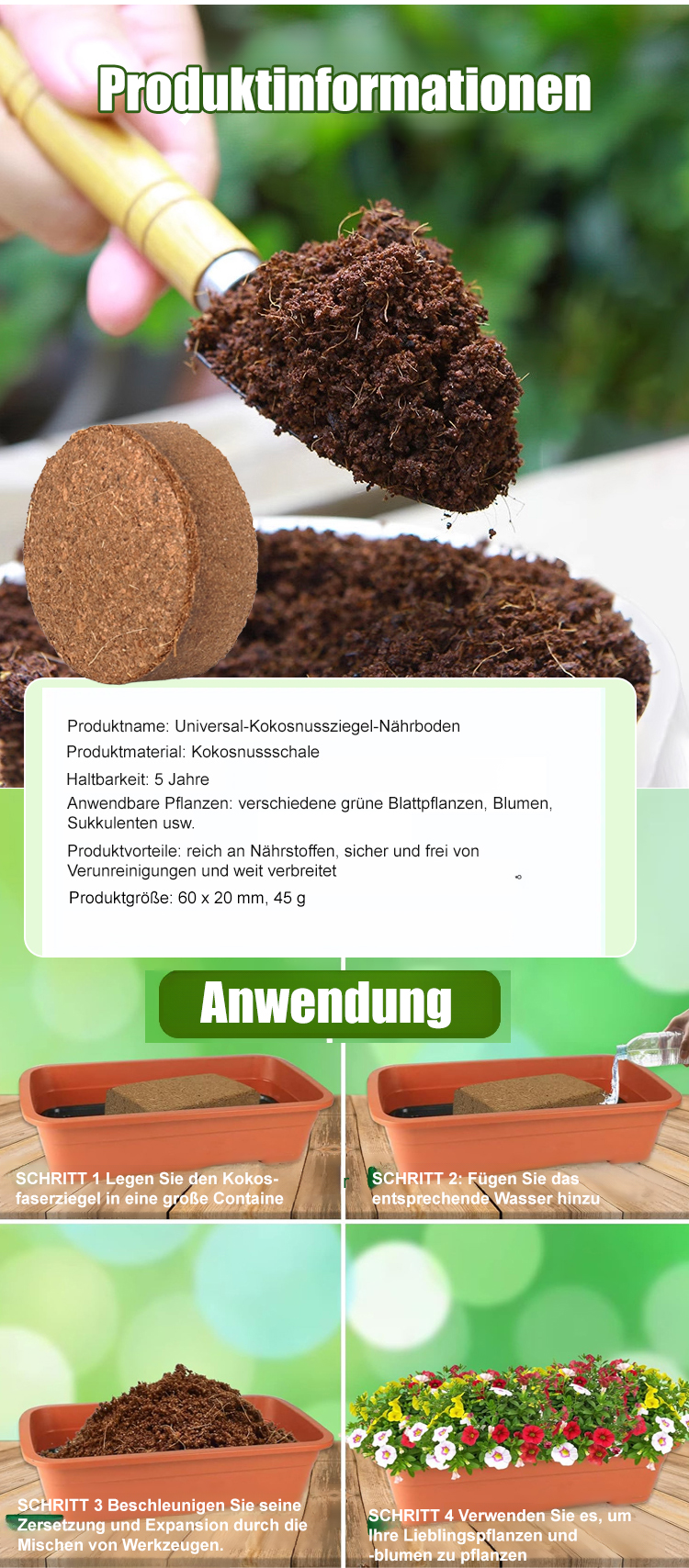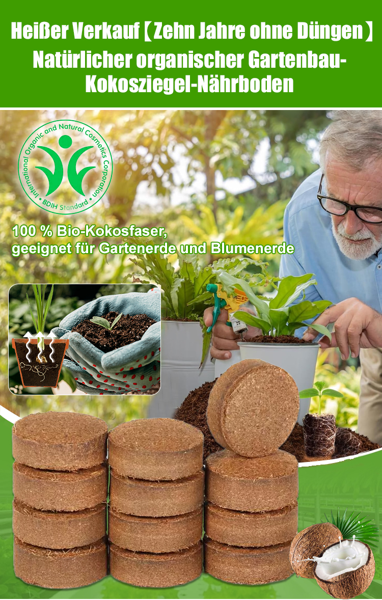 【🌱Gartenbau-Kokosziegel-Nährboden】💖Locker und luftig, fördert das Wurzelwachstum -✨Hochtemperatur-sterilisiert, keim- und schädlingsfrei -✔️Reich an Nährstoffen, düngerfrei
