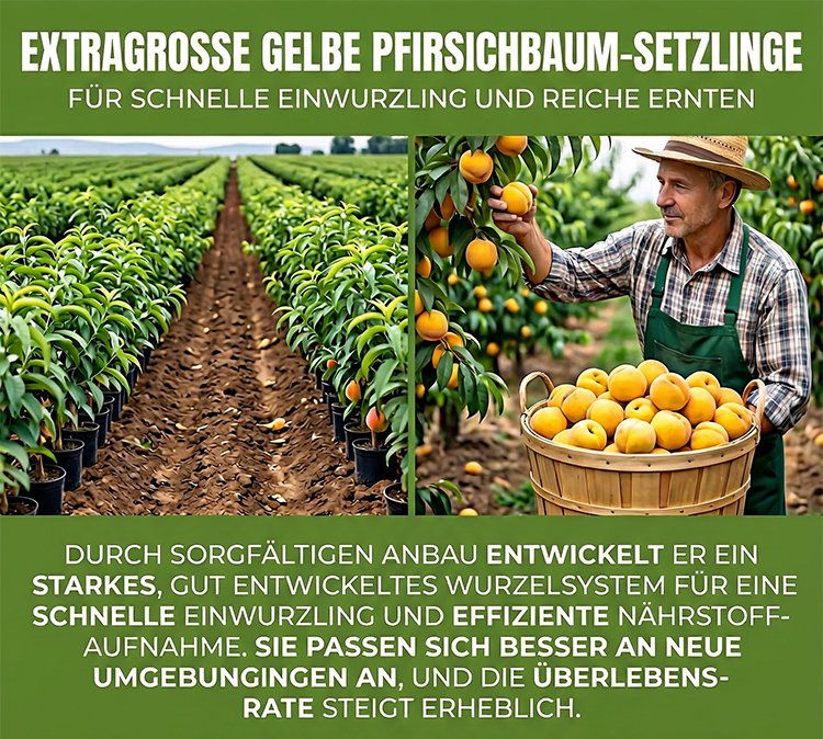 【🪴Drei Monate bis zur Ernte: Große Goldpfirsich-Setzlinge】❄️Hohe Krankheitsresistenz, geeignet für jeden Boden und jedes Klima -🍑Ein Baum kann 20 kg Früchte tragen - Überlebensrate von bis zu 99 %