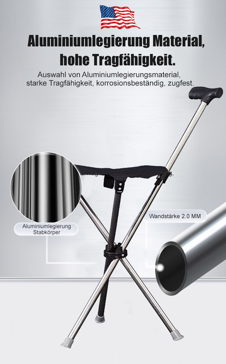 【In einer Sekunde zum Stuhl umwandelbar】Outdoor-Gehstockstuhl
