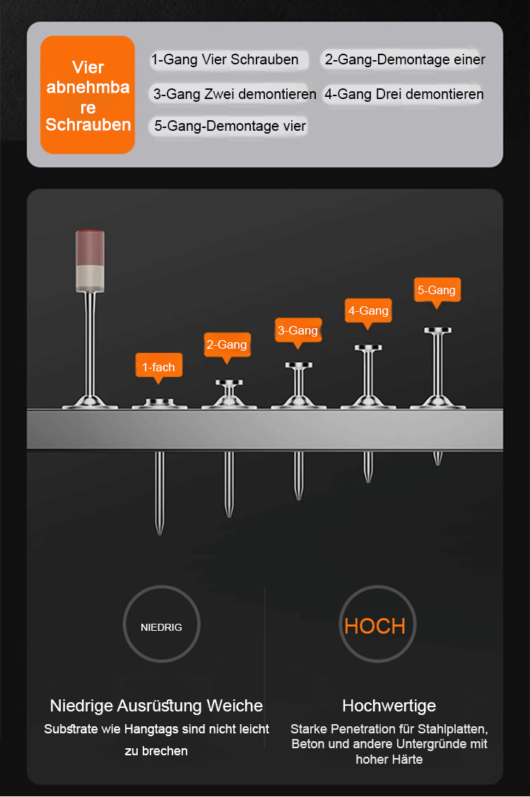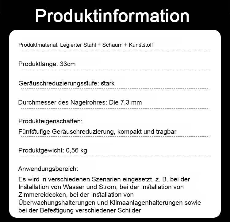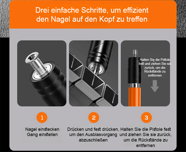Einfache Bedienung, einfach Nagel einlegen und drücken, durchdringt mühelos Stahlplatten.