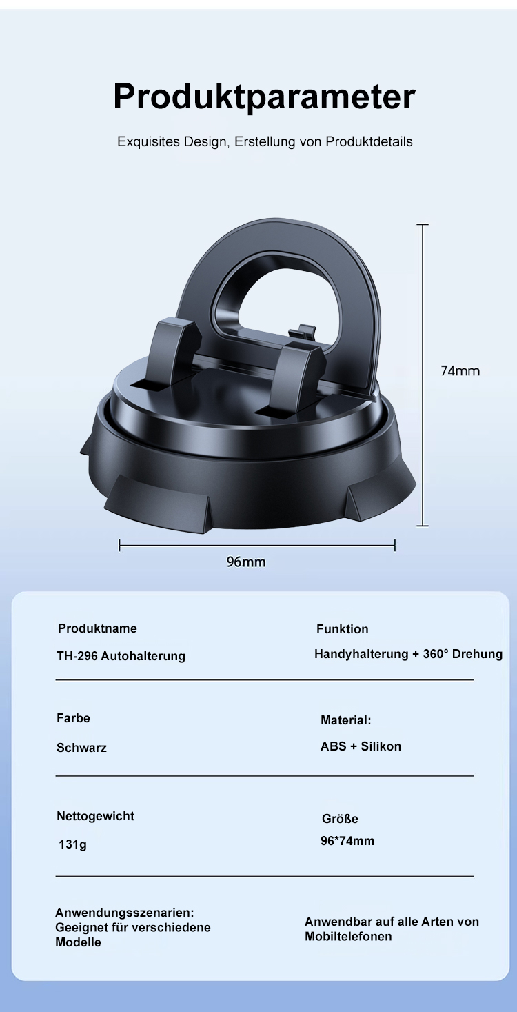 Starke Haftkraft, kein Wackeln beim Bremsen oder Fahren auf holprigen Bergstraßen.Winkel ist um 360° verstellbar, trägt bis zu 5 kg und hält problemlos Handy oder Tablet.