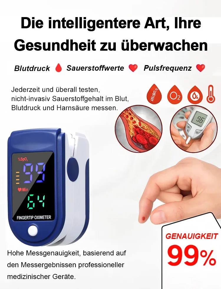 【Vom St. Thomas' Hospital London neu entwickelt】Fingerclip-Blutzucker- und Blutsauerstoffmessgerät - Kein Stechen erforderlich
